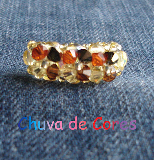 De cristais Swarovski dourados, castanhos, laranjas e amarelos.