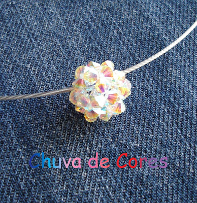 Bola de cristais Swarovski crystal AB com gargantilha cinzenta.